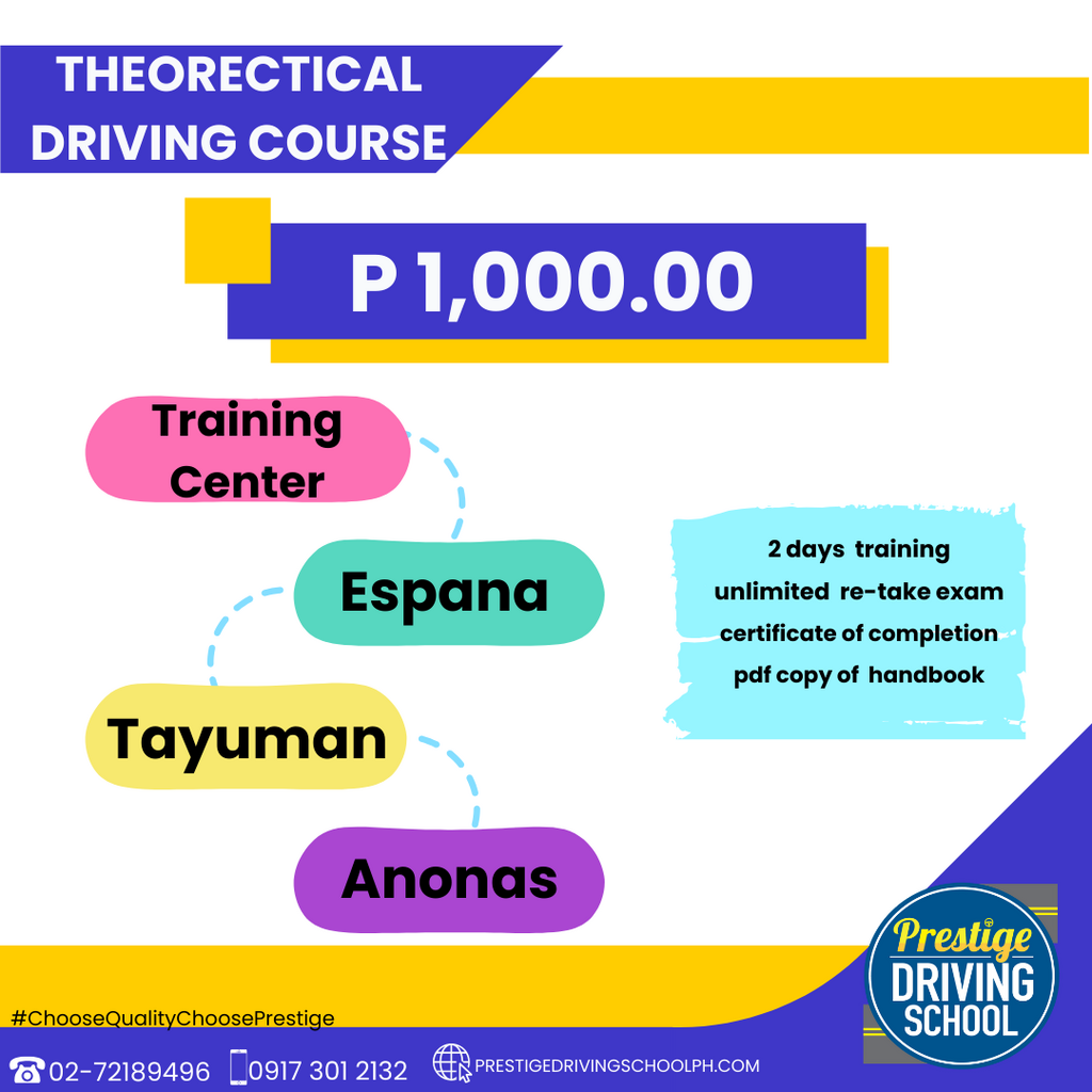 Prestige Driving School started its very first branch at Espana Manila in October 2014. Its founders who started with just one manual and automatic vehicle on hand at that time, believed that the key to road safety is educating student-drivers to become responsible and defensive drivers. Through the years Prestige Driving School have grown from one branch to multiple branches and numerous training vehicles. Being a LTO – accredited school since January of 2015 we always believed that road safety must be a top priority.